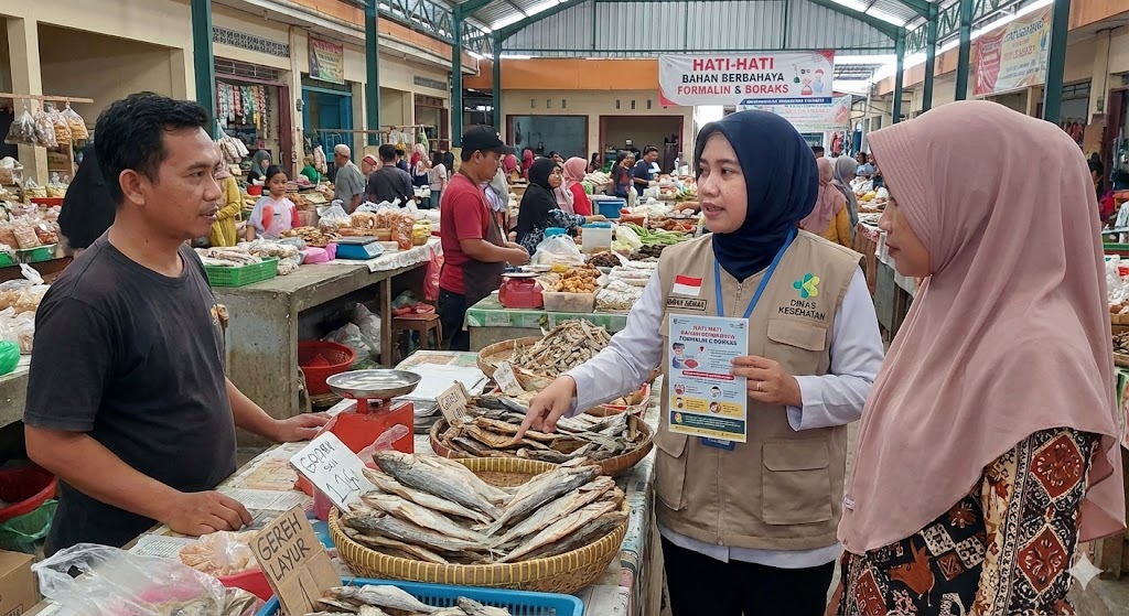 “Saya mengingatkan masyarakat agar lebih cerdas dan selektif dalam membeli bahan makanan. Jangan membeli atau menjual bahan yang mengandung zat berbahaya seperti formalin dan boraks, karena dampaknya sangat buruk bagi kesehatan. Kita harus peduli terhadap kesehatan bersama, terutama untuk keluarga kita,” tegas Bupati.